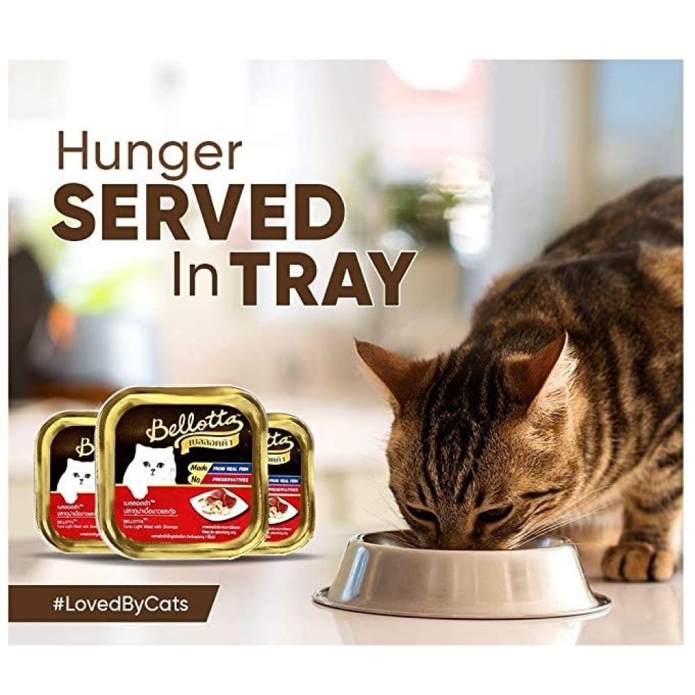 Bellotta tuna light meat with shrimps in jelly brings light meat of tuna garnished with shrimps to give your cat a delicious and nutritious meal. The tasty jelly based food contains animal-based protein which promotes the overall well-being of the cat. With about 85% of water content, the meal hydrates the body of the feline and encourages detoxification. There is vitamin E to offer protection to the cell membranes against the damaging action of the free radicals. Vitamin E also gives strength to the immune system of the body. No preservatives are added in the meal, making this recipe safe and healthy for the feline.