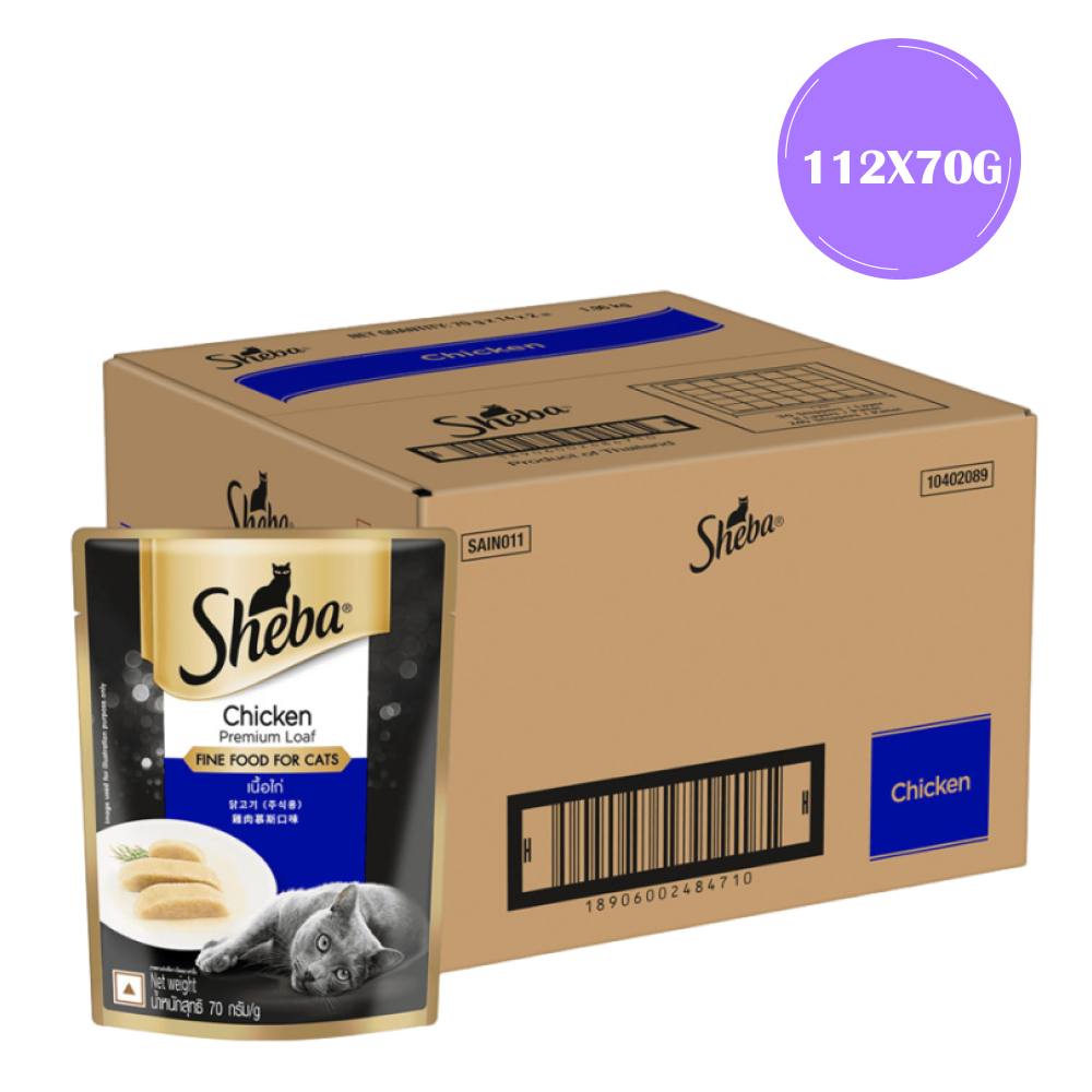 Sheba Fine Premium Adult (1+ years) Wet Cat Food, Chicken Premium Loaf, is a gourmet food crafted with real chicken. It has a pleasing consistency & tantalizing texture. This Sheba wet cat food contains high moisture to keep your cat well-hydrated. It contains essential nutrients like protein, Vitamin E & minerals. It perfectly complements your cat’s complete & balanced diet.