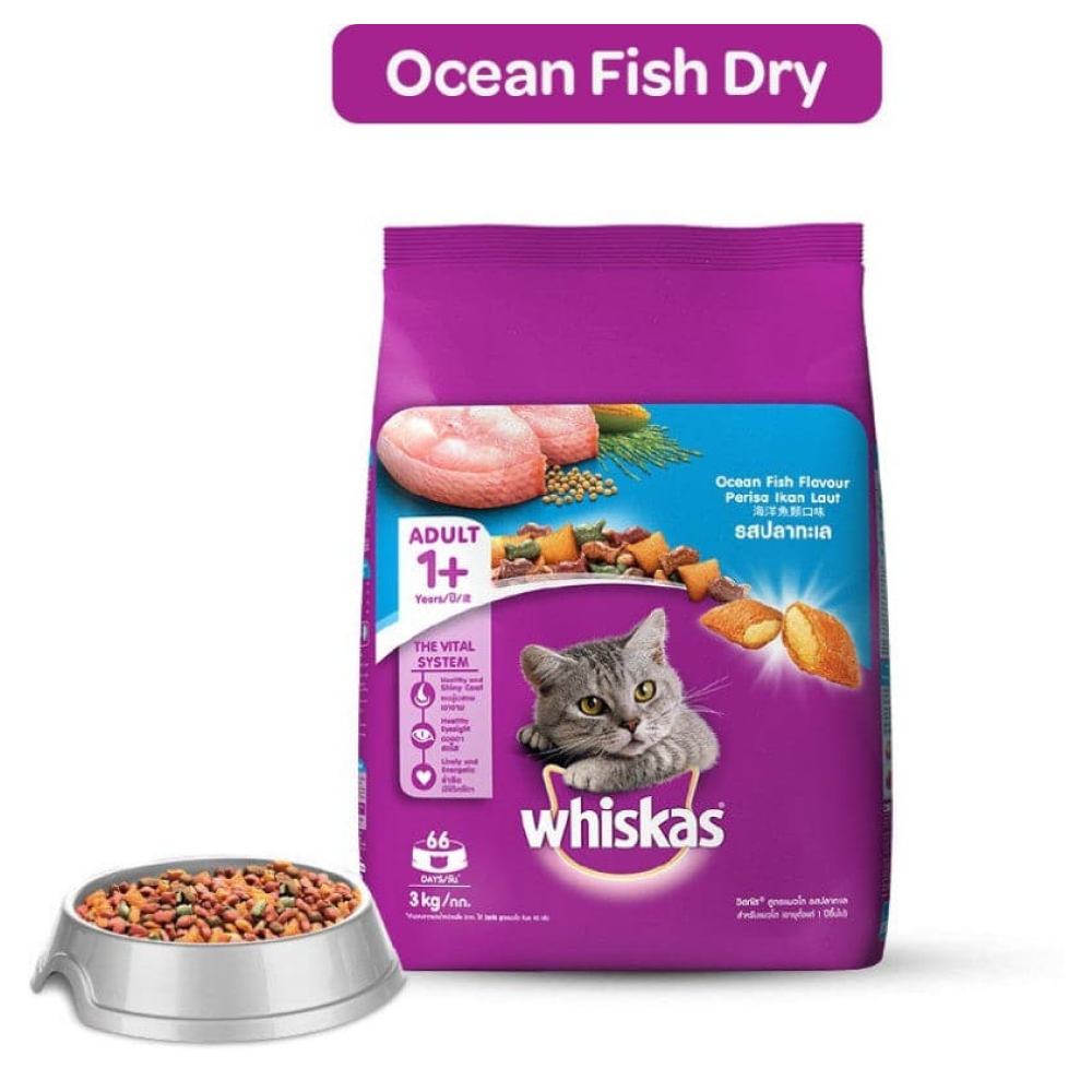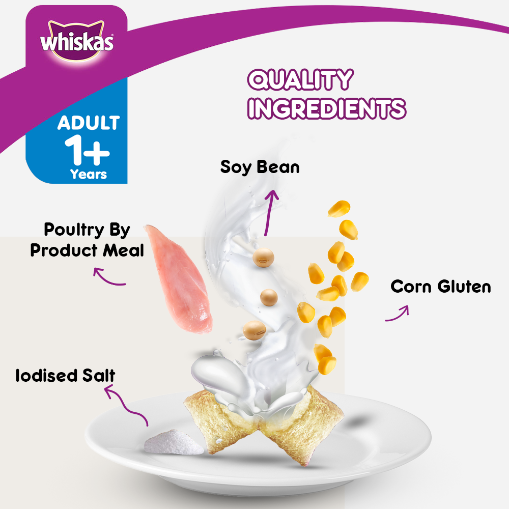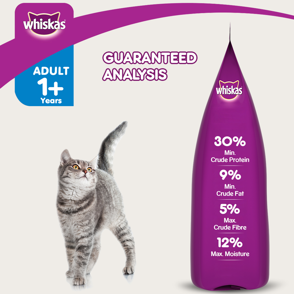 Whiskas ocean fish flavour adult dry cat food is a nutritionally complete and balanced recipe that has carefully been created to cater to the requirements of an adult cat’s system.