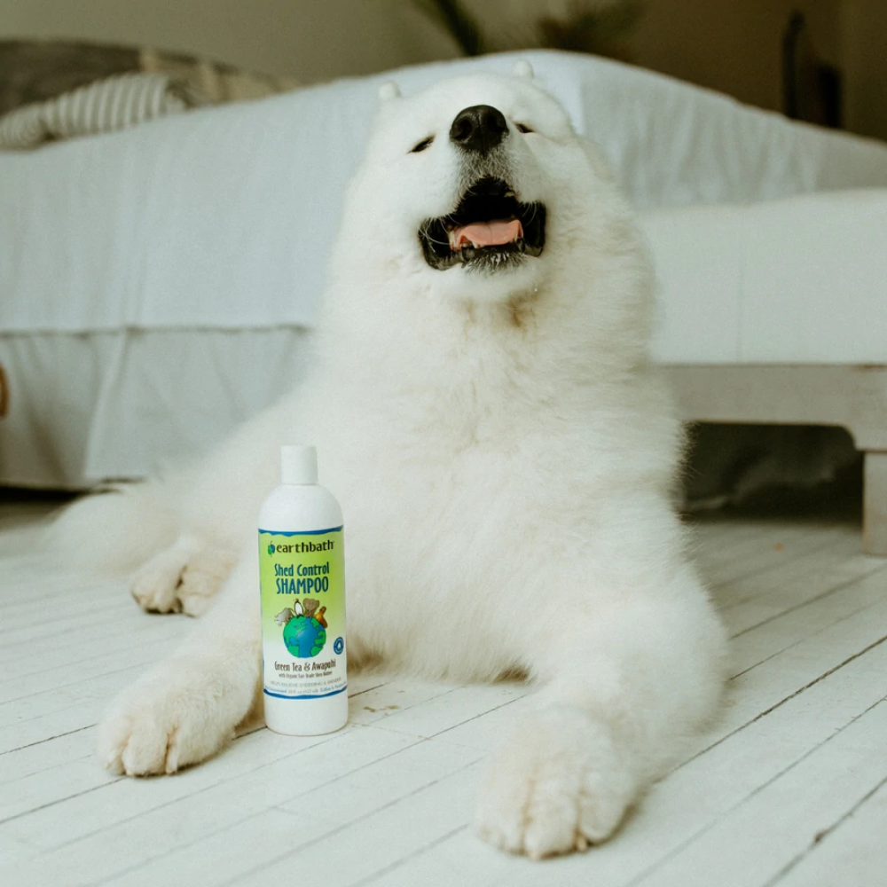 Earthbath blended the finest antioxidants and skin moisturizers to create this Shed Control Shampoo. This potent formula contains organic fair trade shea butter, omega-6 fatty acids, and the extracts of green tea leaf, ginseng, and awapuhi to nourish & detoxify skin and coat while helping to control excessive shedding, dander and associated allergens. Naturally, this pH-balanced soap-free shampoo will thoroughly clean & deodorize, leaving your pet brilliantly soft and heavenly scented.