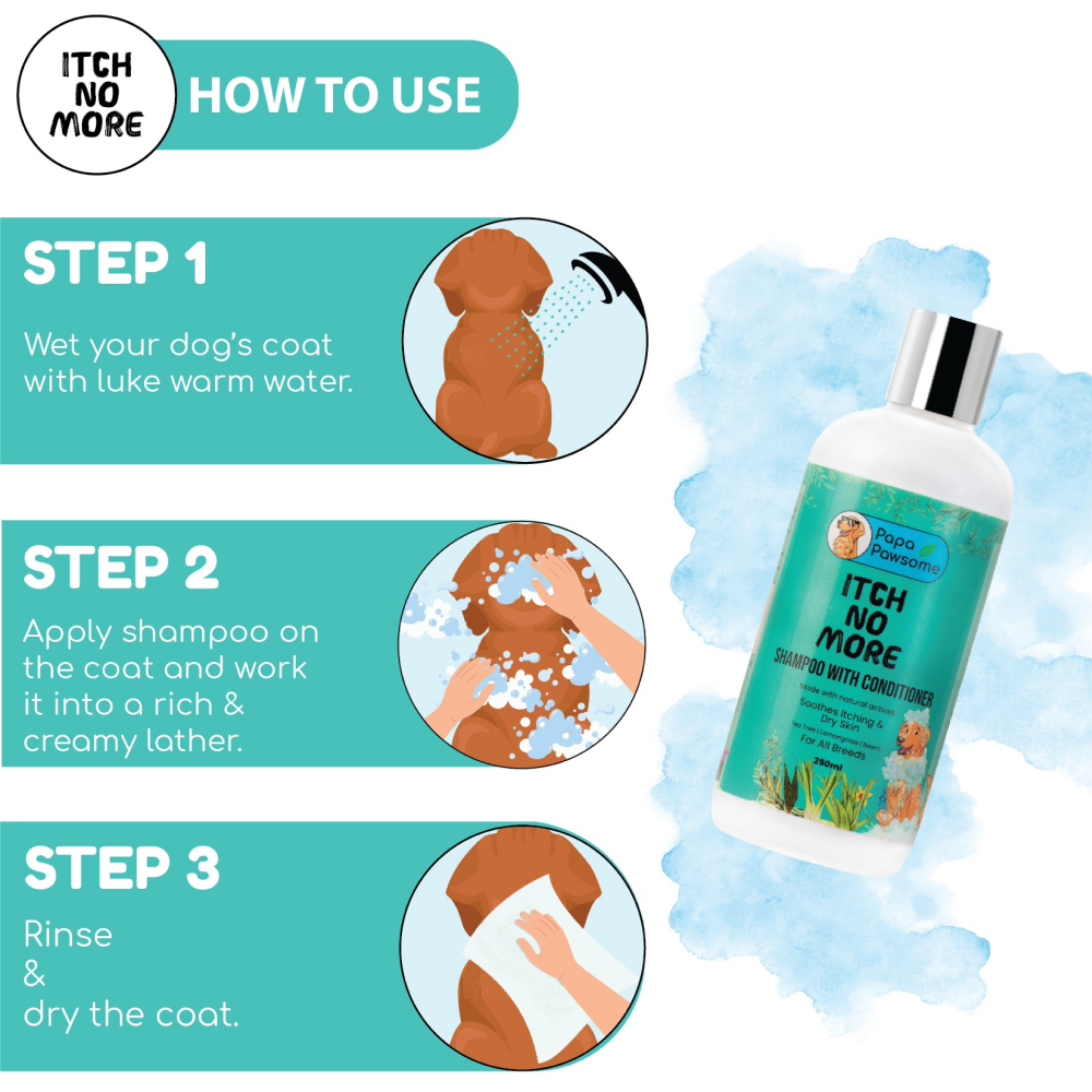 Itch No More Shampoo with Conditioner is the go-to body wash solution for relieving your pet from itching, dryness and rashes. Delicately balanced with essential oils and natural extracts, our shampoo reduces dandruff, dry and flaky skin. It barks away the pesky ticks and fleas while relaxing your pet with a soothing aroma. Tap into the best nature has to offer for the complete worry-free and grooming of your furry friend, leaving them relaxed and safe from itching and rashes.