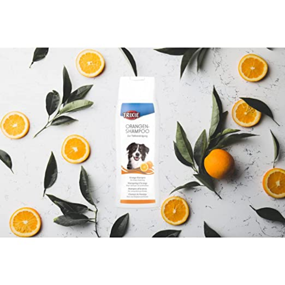 Trixie Orange Shampoo is a dog shampoo that helps in deeply cleaning your pet's coat and skin. It can even dissolve heavy dirt that latches on to your dog's fur while playing outside. Enriched with orange extracts, it gives their coat a luxurious shine and it smooth. Suitable for all dog breeds, this dog shampoo leaves your dog with a clean and shiny coat, with a refreshing fragrance that lingers for long.