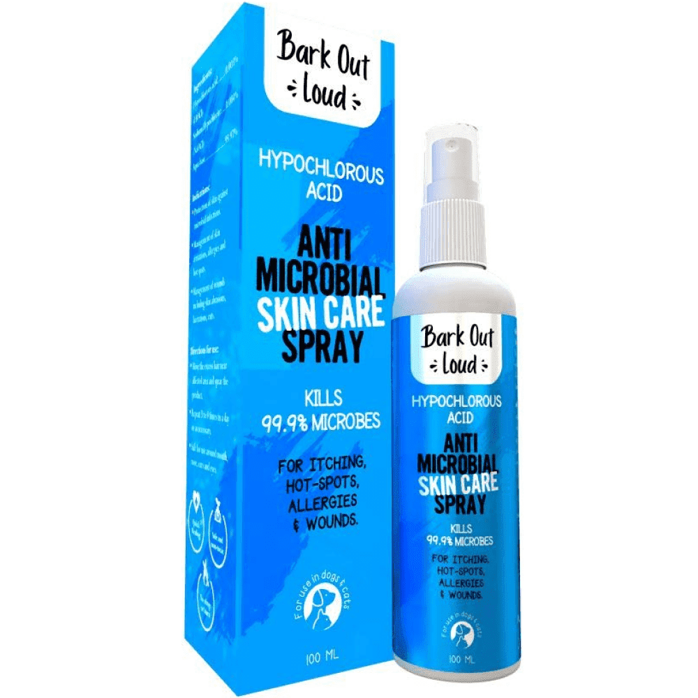 Microbes are present everywhere in the surroundings. They tend to enter your pets' body, through a wound or cut and multiply to form colonies of a host organism. This leads to infections and leaves your pet seriously ill. A pet's skin and coat are prone to such microbes which are favorable for multiplication. Bark Out Loud's Antimicrobial Spray is the first line of defense for your pets' skin related woes. It works as a disinfectant on your pets' body & surroundings too. It effectively works on wounds, keeps them clean & helps in faster healing. It’s an easy to apply spray form. Protects your furry friend from microbes. It helps in speeding up wound healing from first and second degree burns as well as skin rashes and hotspots. It does not burn or sting when applied. It’s completely safe to spray, even around the mouth, nose and eyes for both cats and dogs.