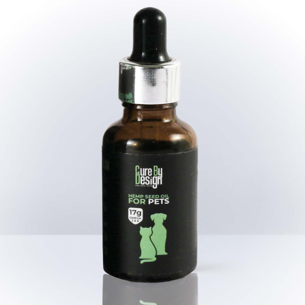 Give your furry friend they nutrition they deserve with Cure by Design’s Hemp Seed Oil for Pets. Packed with essential fatty acids and antioxidants, organic hemp seed oil is “the spinach to your pet’s Popeye.” Hemp seed oil contains 0.00% THC and provides the perfect balance of Omega 3, 6 & 9 for your dog. This optimum plant-based nutrition is easy to digest, leading to elevated health in your pet. Whether added to food or used externally, you’ll see the difference within a matter of weeks – not only will their coats, ears, eyes, joints, nails and teeth improve, but their mood will be elevated, and they’ll even have better breath!