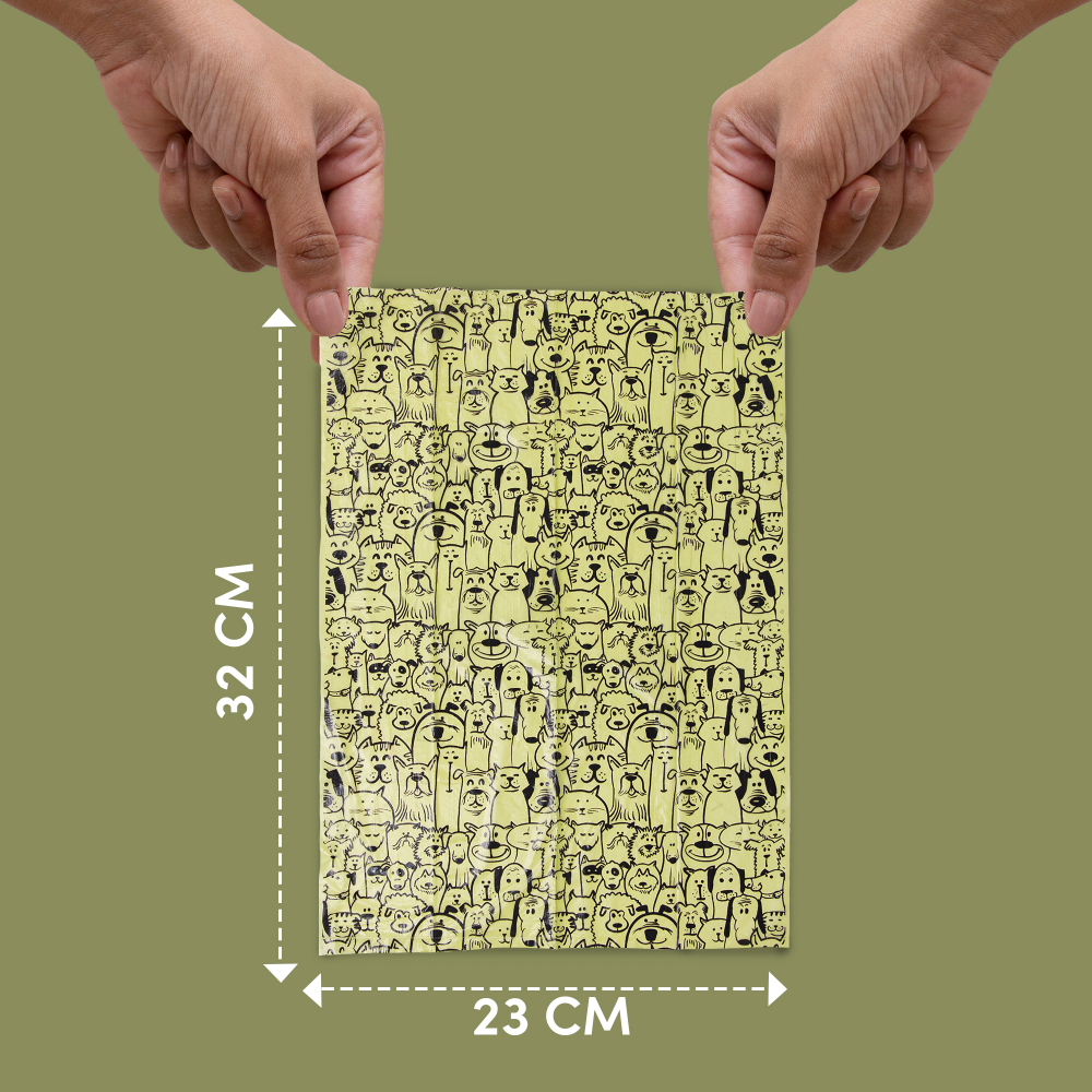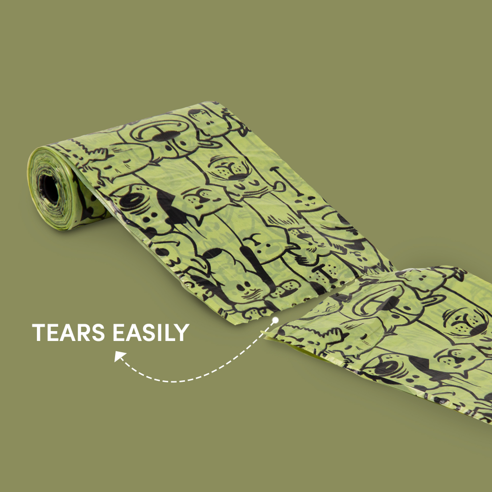 Barkbutler Fofos Poop Bag Refills are made out of a resin derived from plants, vegetable oils and compostable polymers, and break down completely in the right conditions (under 18 months). They're strong, Thick enough to be reassuring and not let you feel what youƒ?ø?re picking up too closely-but they're also thin enough to be easy to open and separate from the roll. These bags are made from recycled materials that, while not compostable, help to reduce the environmental impact of dog waste and new plastic. Pet Waste Bags are made out of a resin derived from plants, vegetable oils, and compostable polymers, and break down completely in the right conditions Constructed of sturdy, leak-proof plastics, our dog waste bags are strong enough to hold up to even the largest piles of waste; High-quality rip-free seams keep waste contained. For dogs of all sizes. Each waste bag measures at 32 x 23 cm.