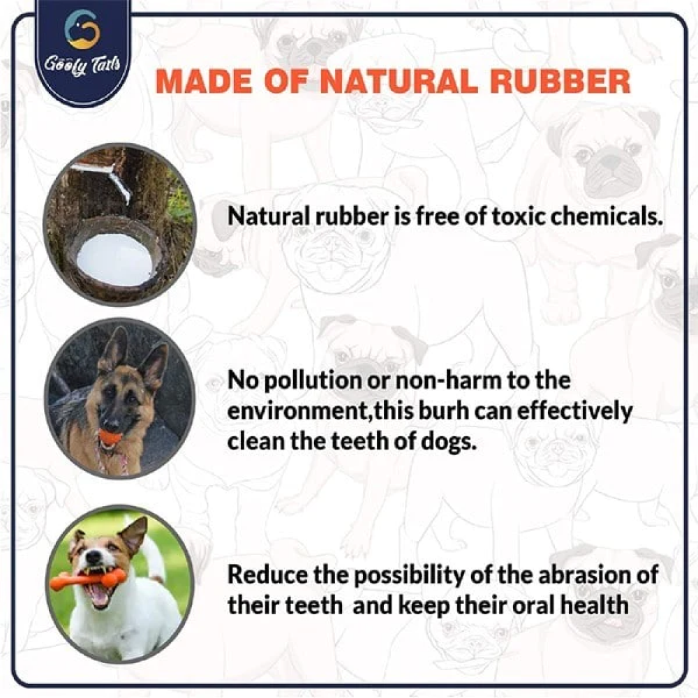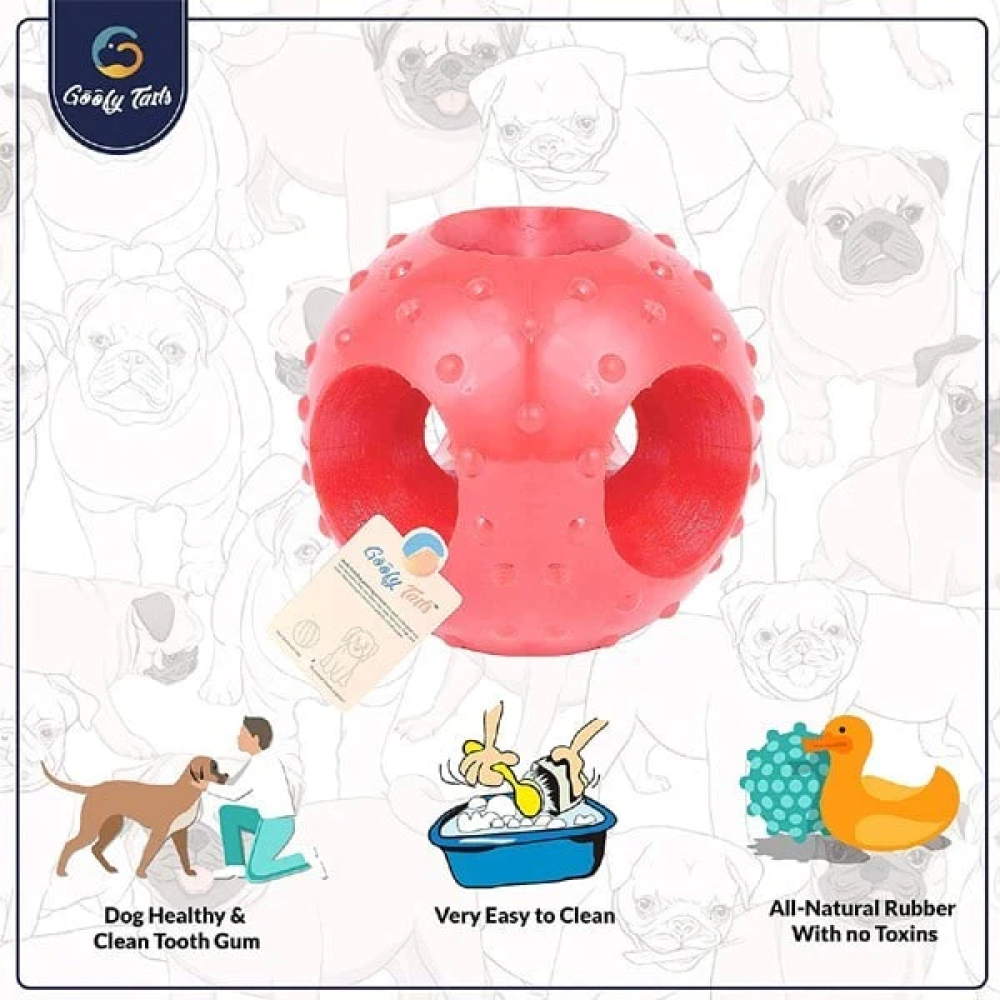 Dogs love to chew and bite anything that is chewable. This is very advisable to give your pet a chew able toy to make sure that they don't chew your valuables like shoes, pillows, etc. which is not a healthy sign. That is why Goofy Tails has brought Flavored Rubber Chew Ball & Paw Print Rubber Bone in one pack.