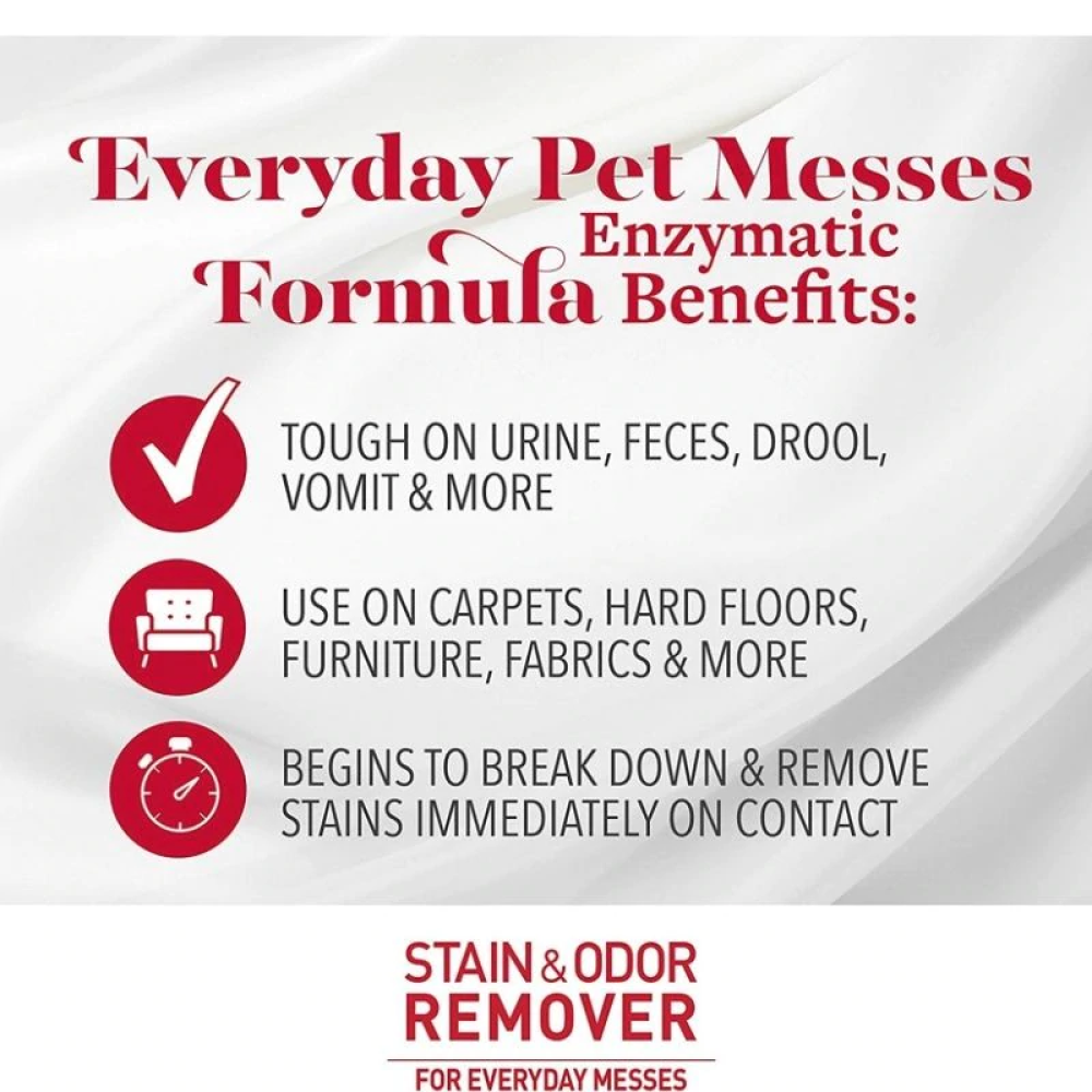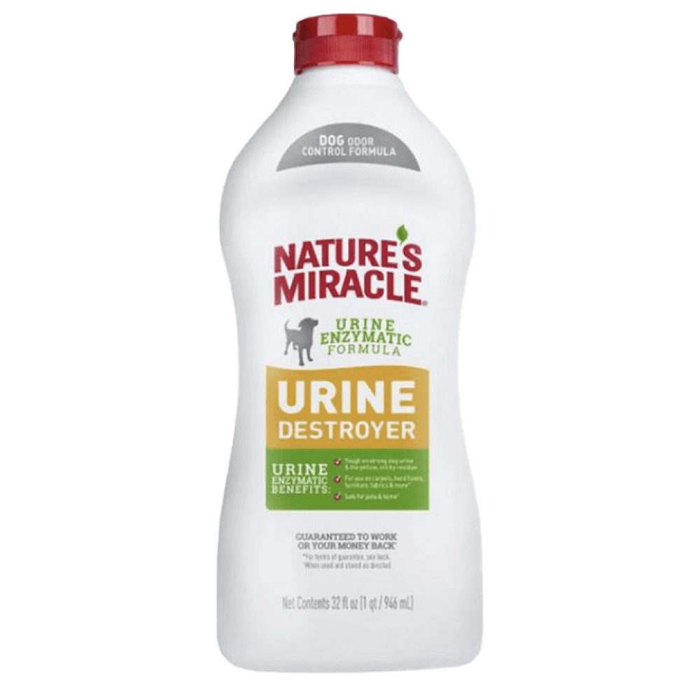 Nature's Miracle Urine Destroyer for dogs is tough on strong dog urine and the yellow, sticky residue that comes along with it. The bacteria-based formula produces enzymes when it comes in contact with bio-based messes to target urine and freshens with a light fresh scent. When used as directed it's safe to use on carpets, hard floors, furniture, fabrics and more.
