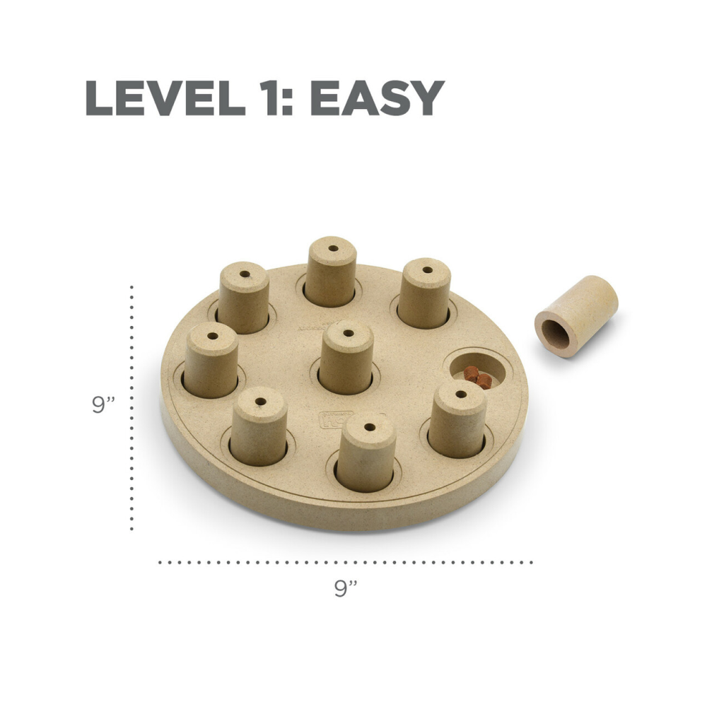 All you have to do is place your pet's favourite dry treats or kibble under the removable pegs. You can fill some of them or all of them, your pet should be able to tell which ones have the treats via the scent holes placed at the top of each peg. Exercising your pet's mind is important as it prevents him/her from getting bored. This will help to keep destructive behaviour in check and even helps shy dogs gain confidence.