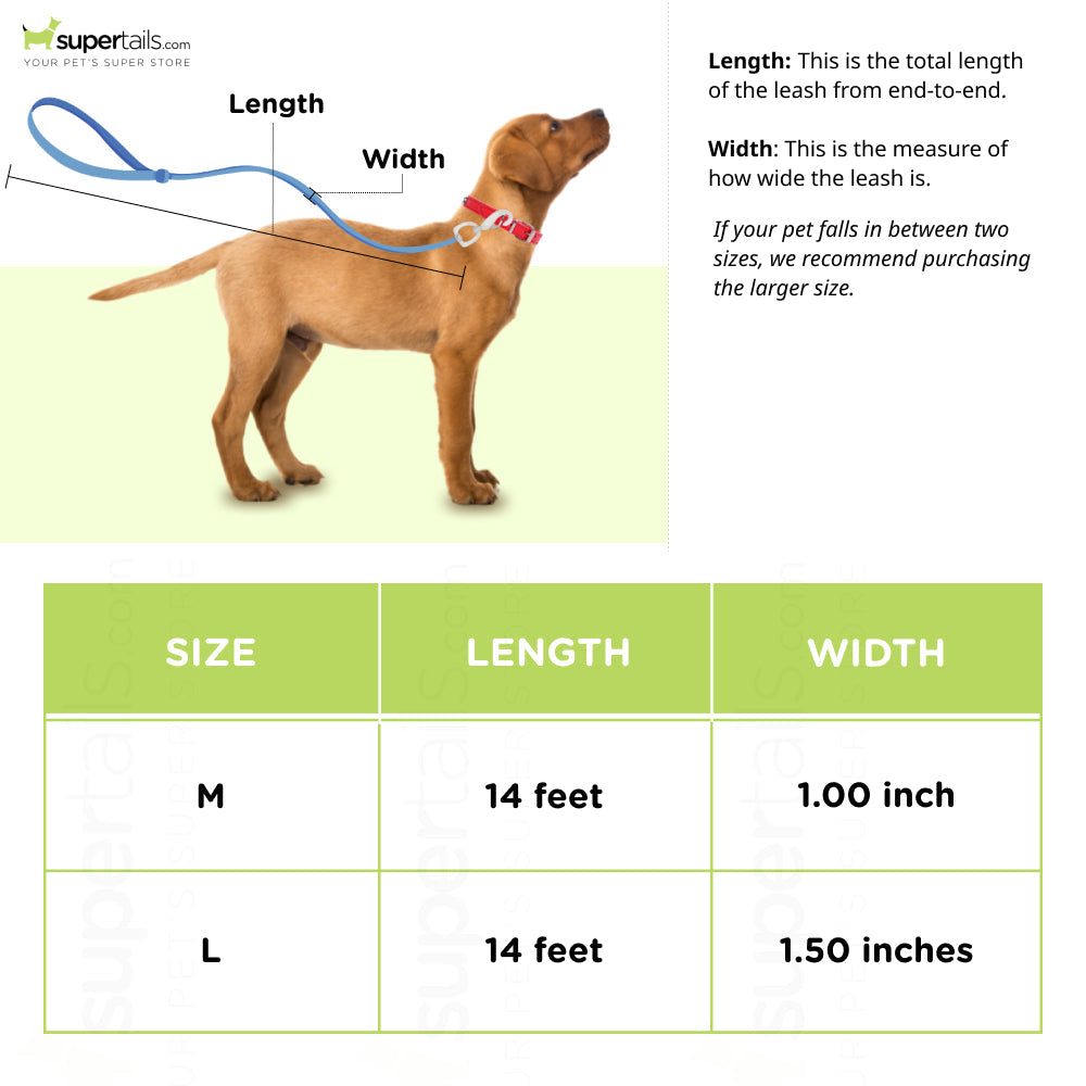This leash is available in 2 variants of thickness - 1" & 1.5" in width making it comfortable to hold and strong enough to train pups and large sized dogs alike.