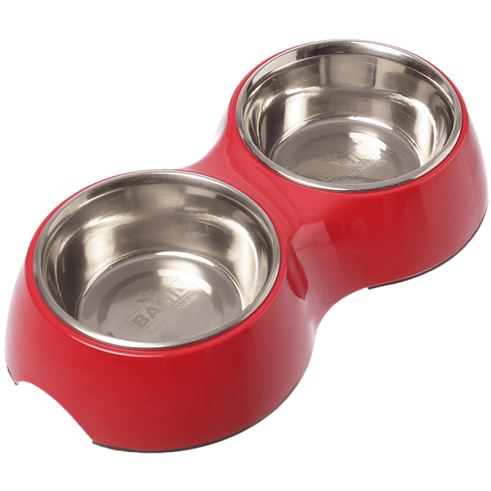 Basil Double Melamine Bowl Dinner Set for Pets (Red)