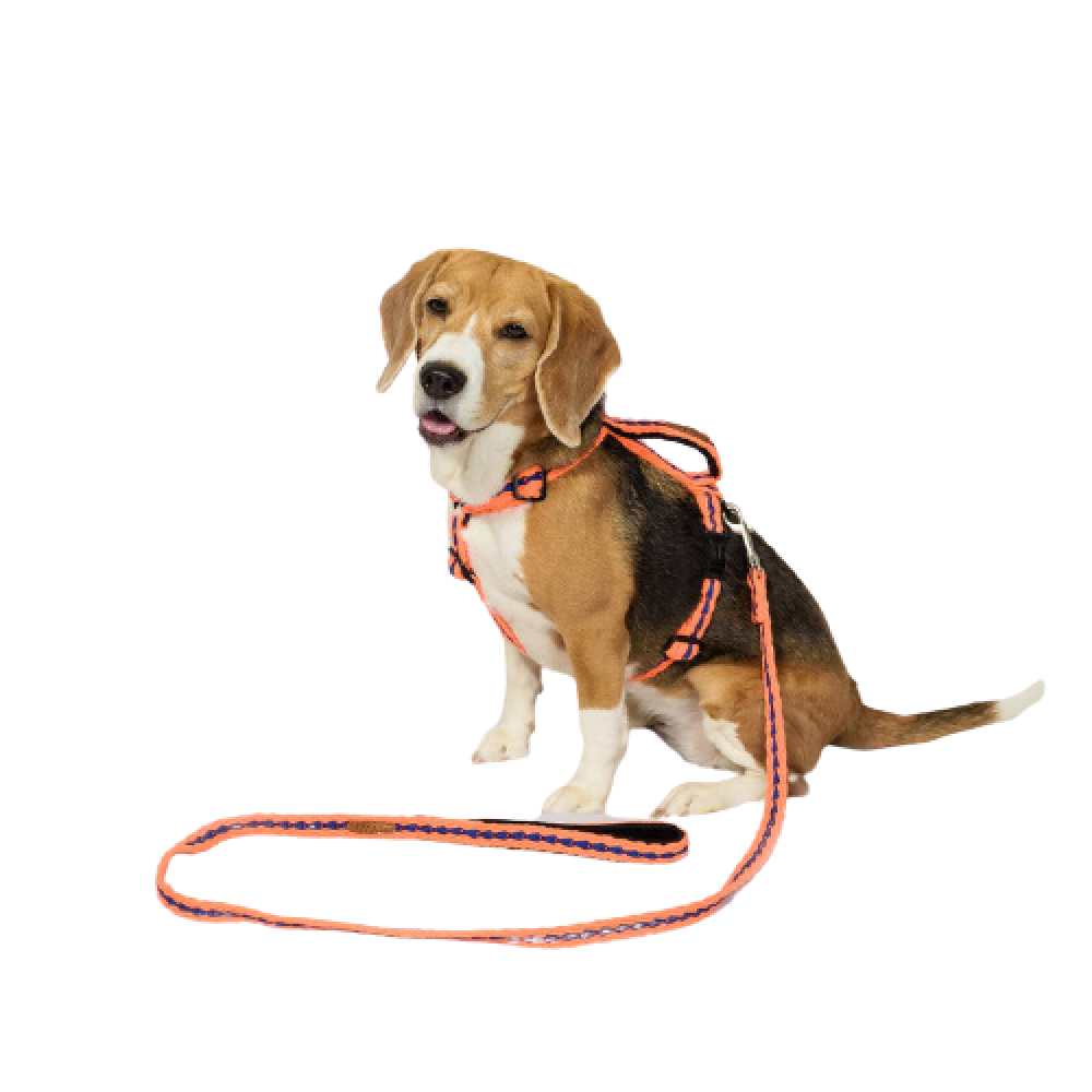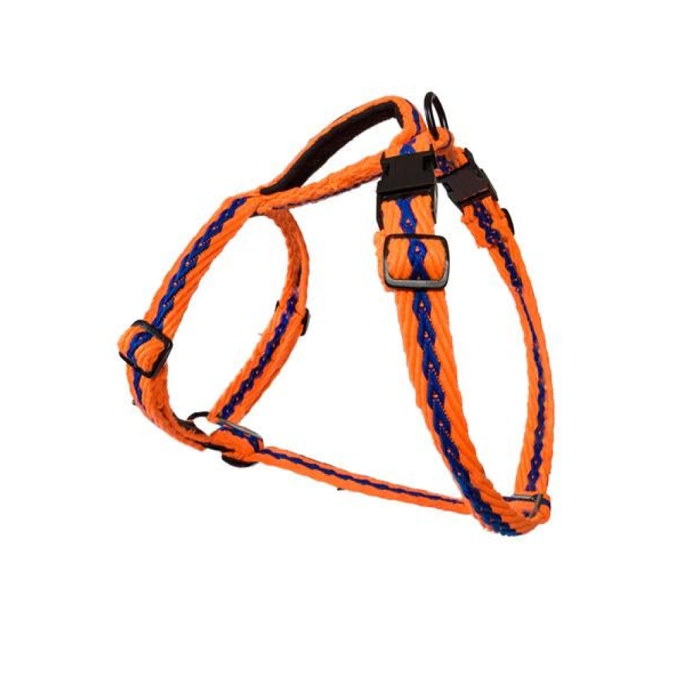 PetWale Cotton Adjustable H-Harness for Dogs (Orange with Blue)