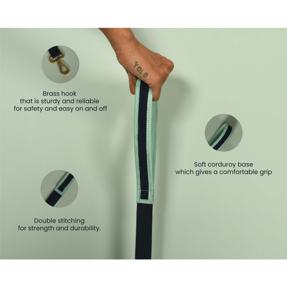 IndieGood Matching Set Corduroy Dog Collar with Bond Band For Human (Blue)