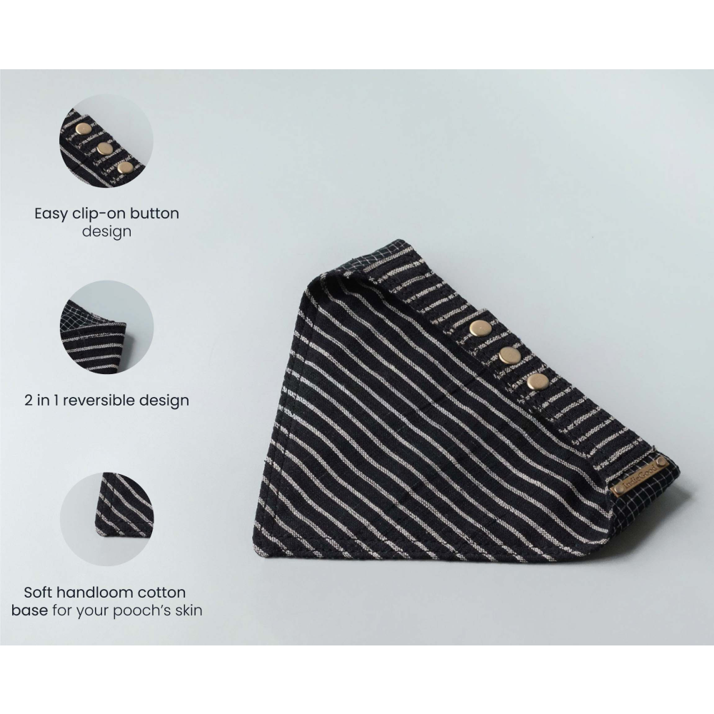 IndieGood Handloom Cotton 2 in 1 Stripes and Checks Bandana for Dogs