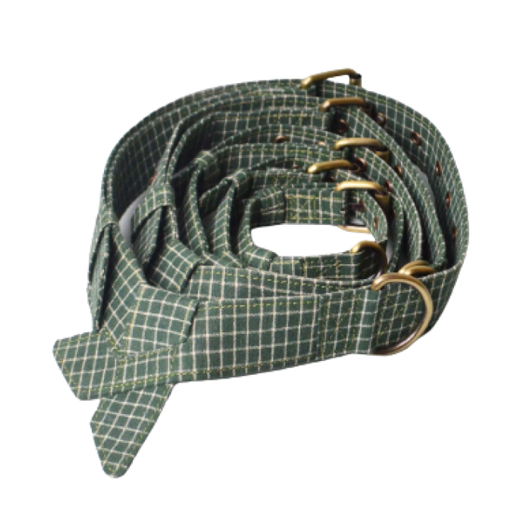IndieGood Handloom Cotton Party Checks Collar for Dogs (Green)