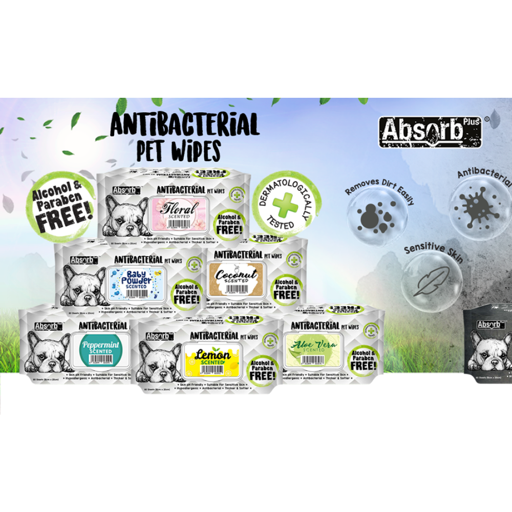 Absolute Pet Absorb Plus Floral Scented Antibacterial Wipes for Pets (15x20cm)