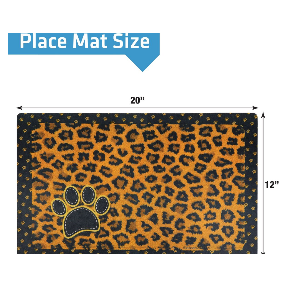 Dry Mate Leopard Dog Bowl Place Mat for Pets (12x20 inch)