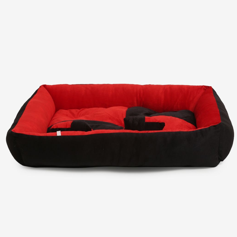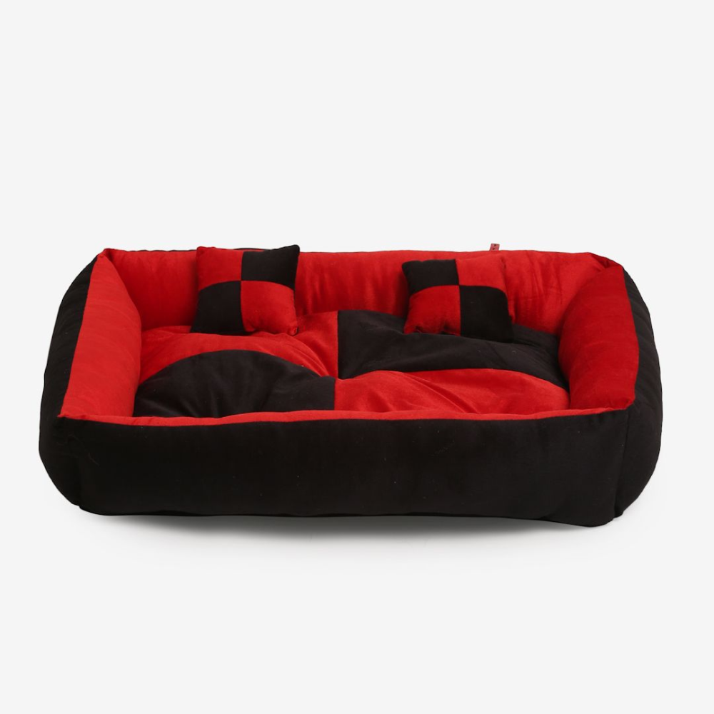 Wiggle Twiddle Checked Lounger Rectangular Bed for Pets (Red & Black)