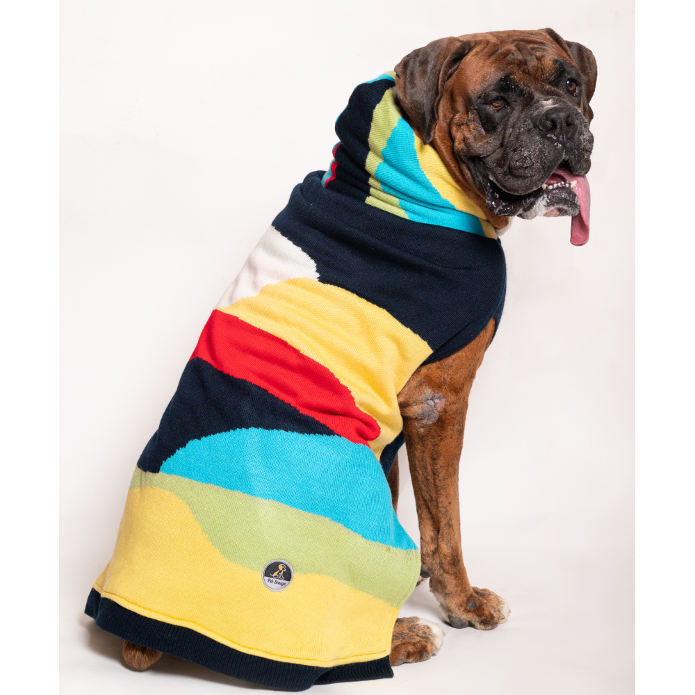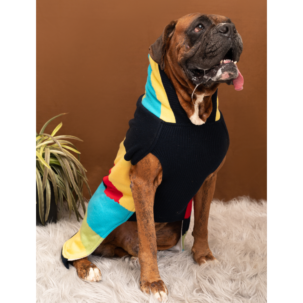 Petsnugs Color blocked Knit Sweater for Pets (Yellow, Green, Red, White & Blue)