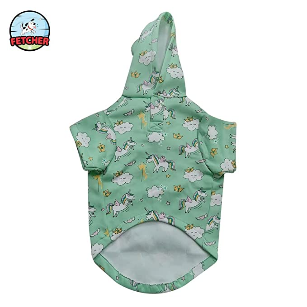 Fetcher Sea Green Cute Printed Premium Warm Fleece Hoodie for Pets