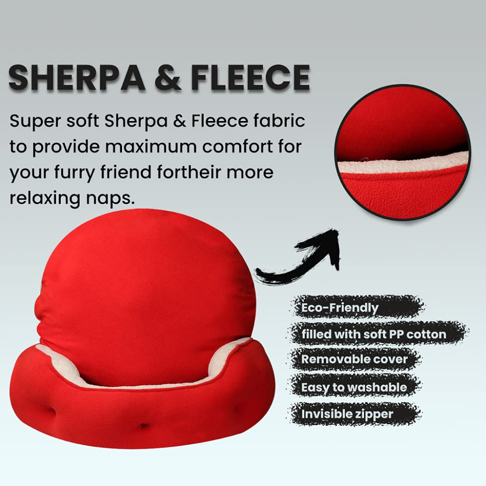 Petslover Warm Fleece Winter Round Shape Reversible Ultra Soft Bed with Cushion Pillow for Pets (Red)