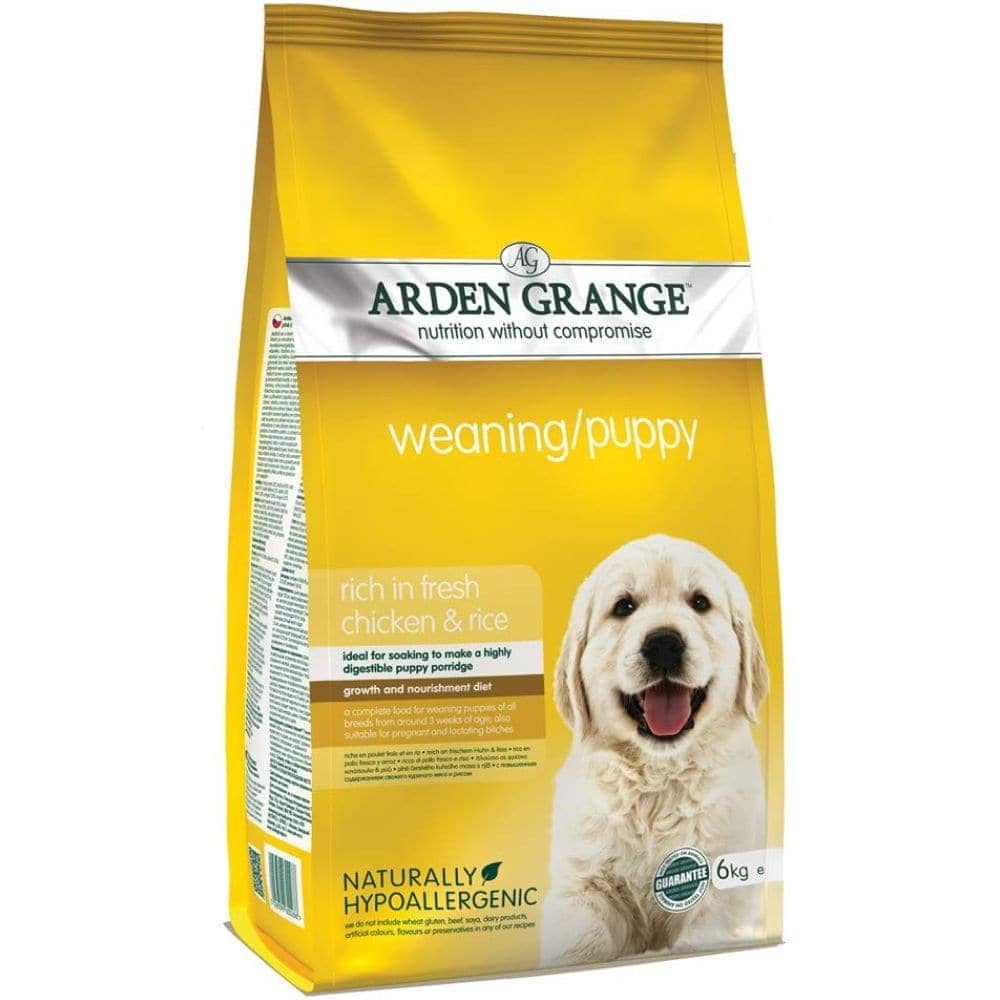 A good starter dog effectively transits weaning puppies to solid foods. The kibble should be quickly turned into a porridge-like consistency for helping puppies to chew the food quickly. A diet like Arden Grange with Chicken Weaning Puppy Food 6 Kg is an apt starter dog for puppies as well as pregnant and lactating dogs of all breeds. The food contains highly appetizing chicken as well as rice which allures the fussiest of eaters. The kibbles are smaller in size that can be easily soaked to create porridge for weaning puppies. The nutritional profile of the food suits the young puppy’s delicate digestive system The fresh chicken meat offers a protein content of high biological value for building lean muscle mass and strength. A healthy combination of fats, vitamins and minerals supports healthy growth and development in the puppies. Arden Grange with Chicken Weaning Puppy also keeps pregnant as well lactating bitches lively and high spirited. Rosemary Extract present in the diet is an excellent antioxidant for strengthening the defence mechanism of the dogs.