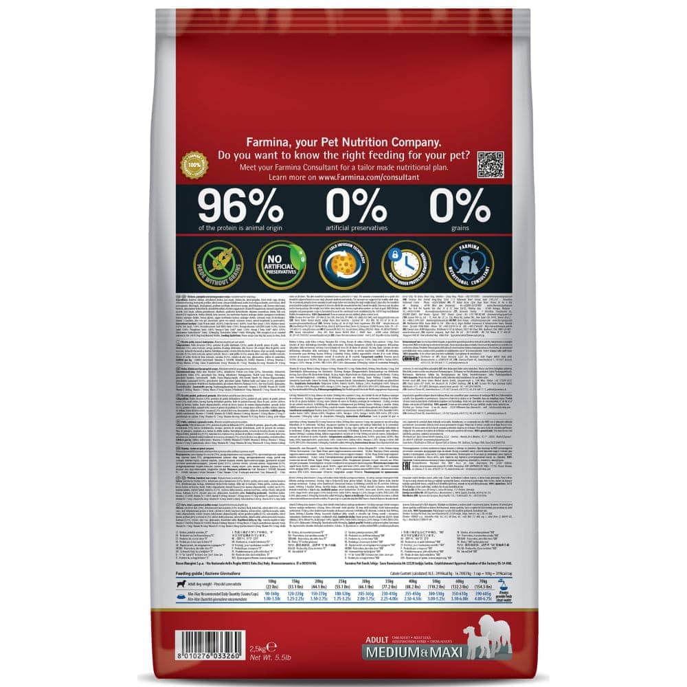 Specially made to avoid grains or cereals, 60% of the Farmina N&D Grain-Free Chicken & Pomegranate Adult Medium & Maxi Breed Dog Food consists of chicken. The remaining 40% is from nutritious veggies.Fibre from the pumpkin contributes to a smooth functioning digestive system. Pomegranate has plenty of antioxidants to strengthen the immune system. This food has kibble size specially made to suit the large jaws of medium and maxi breeds.