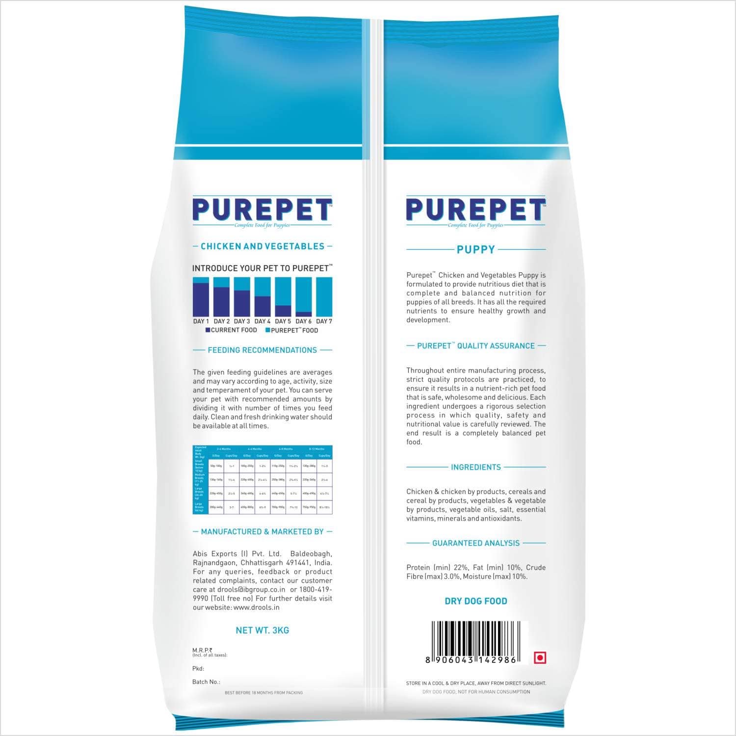 Purepet Chicken and Vegetables Puppy Dog Food is a complete and balanced nutritional diet which provide all the health benefits to growing puppies. It helps in brain development and promotes healthy immune system. Purepet is a high quality food, approved by Veterinarians which is suitable for all the breeds.