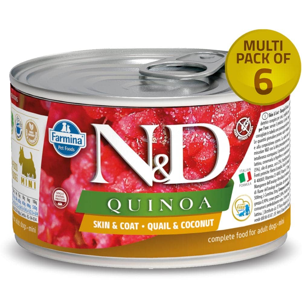 - N&D Quinoa Skin & Coat is a complete dietetic food for dogs.