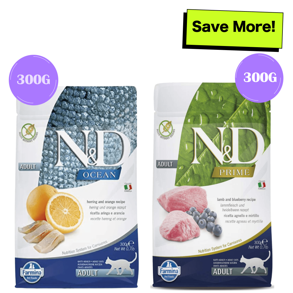 Farmina N&D Prime Lamb & Blueberry and Ocean Herring & Orange Grain Free Adult Cat Dry Food Combo