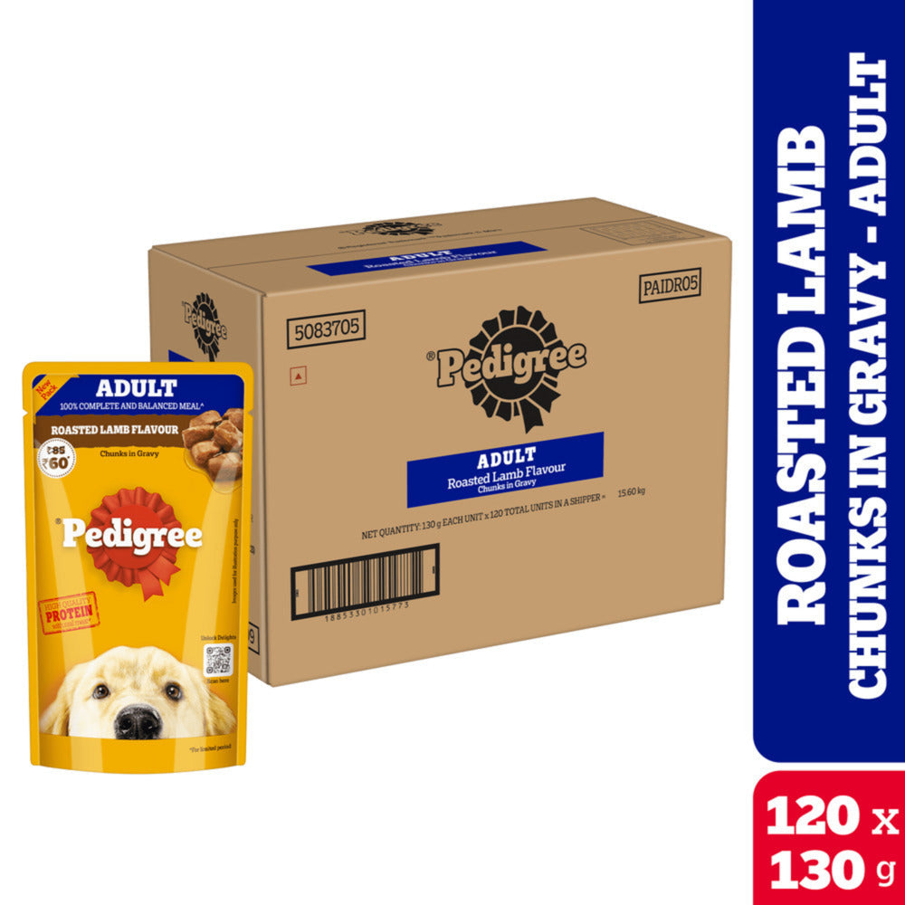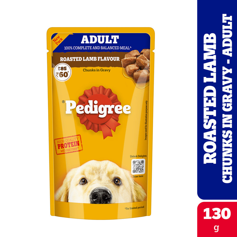 Pedigree Roasted Lamb Flavour Chunks in Gravy Adult Wet Food (130g)