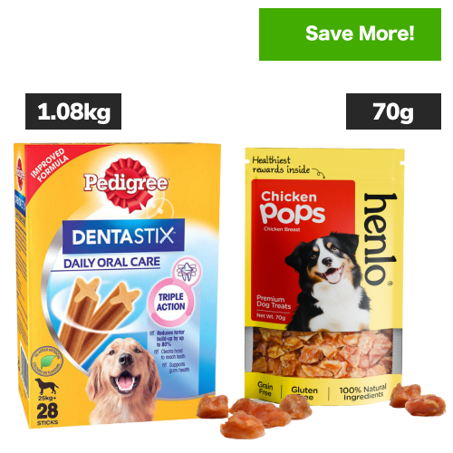 Pedigree Dentastix Oral Care for Adult (Large Breed of 25 kg+) and Henlo Chicken Pops Dog Treats Combo