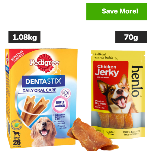 Pedigree Dentastix Oral Care for Adult (Large Breed of 25 kg+) and Henlo Chicken Jerky Dog Treats Combo