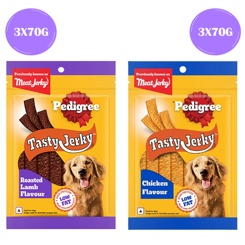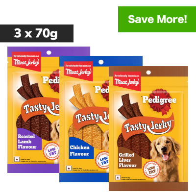 Pedigree Chicken & Liver, Grilled Liver and Roasted Lamb Flavour Tasty Jerky Dog Treat Combo