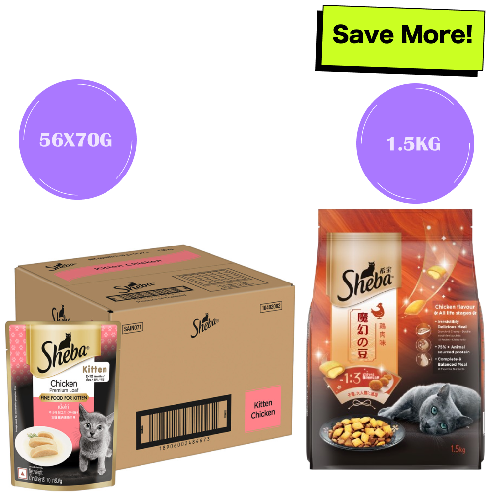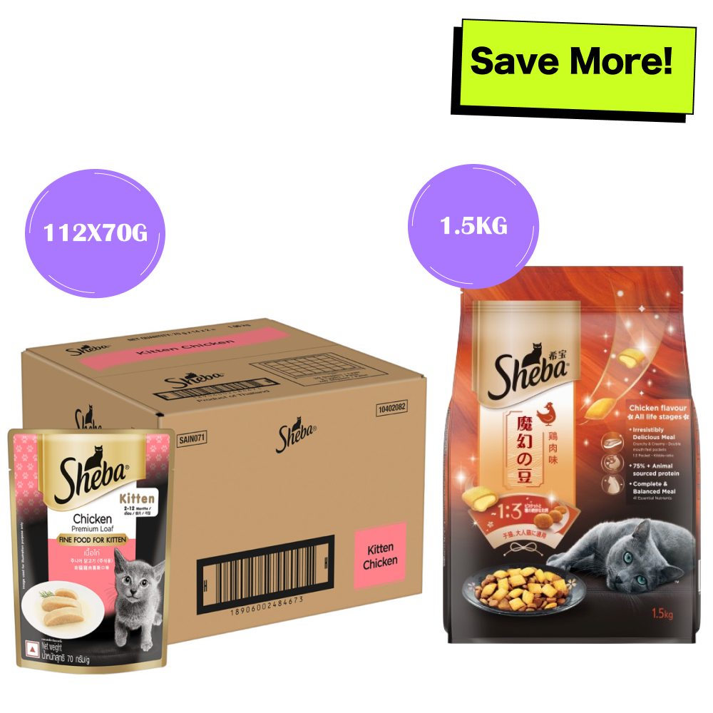 Sheba Chicken Loaf Premium Kitten (2 to 12 Months) Wet Food and Chicken All Life Stage Cat Dry Food Combo
