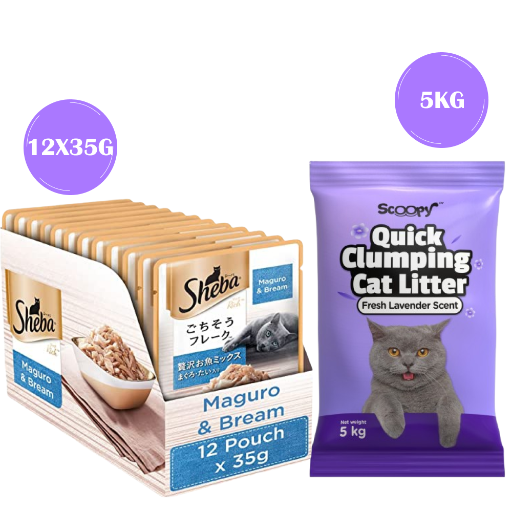 Sheba Maguro & Bream Fish Mix Premium Cat Wet Food and Salmon Flavour Irresistible All Life Stages Cat Dry Food Combo