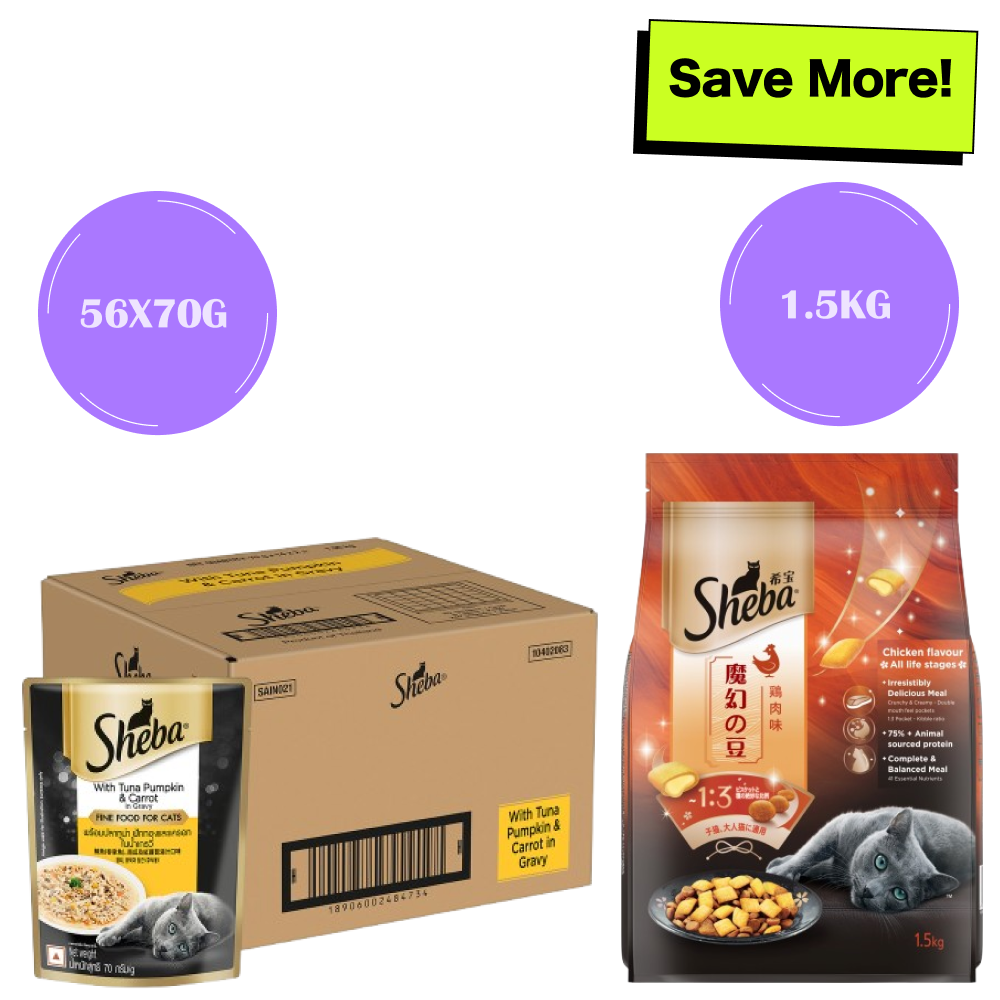 Sheba Complete Nutrition Succulent Chicken Breast In Gravy Cat Wet Food and Chicken Flavour Irresistible All Life Stage Cat Dry Food Combo