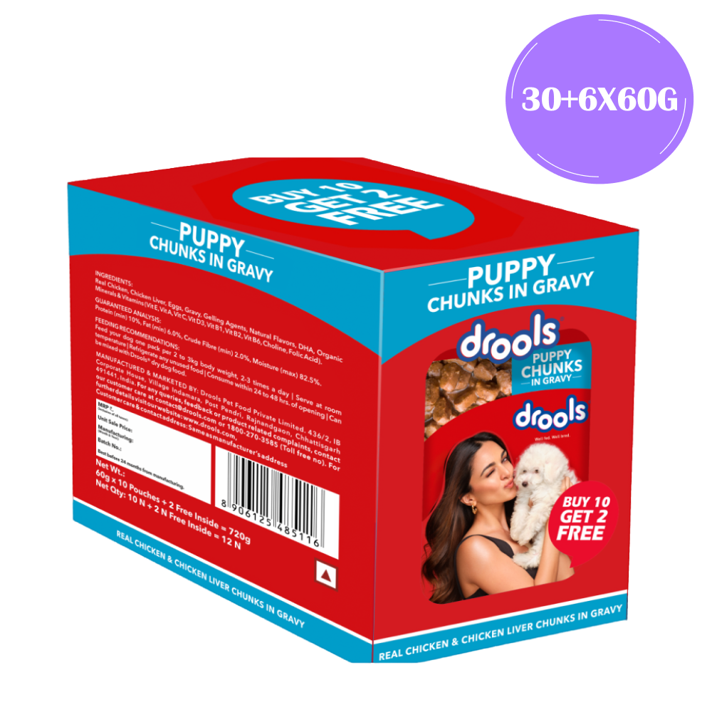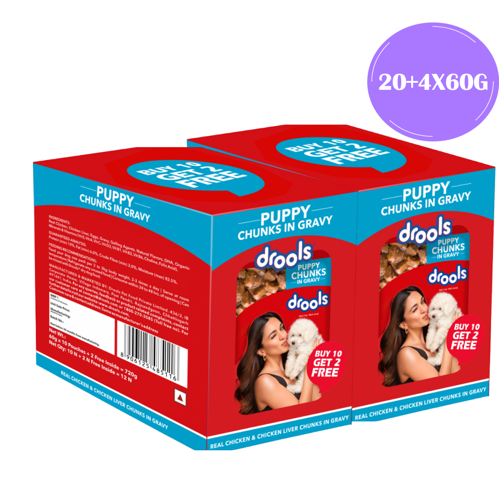 Drools Real Chicken & Chicken Liver Chunks in Gravy Puppy Dog Wet Food (60g)