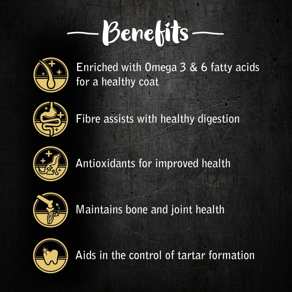 Enriched with Omega 3 & 6 fatty acids for a healthy coat.