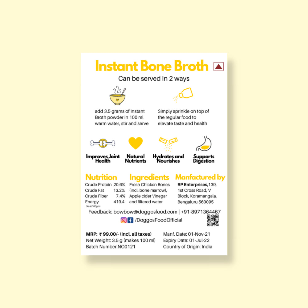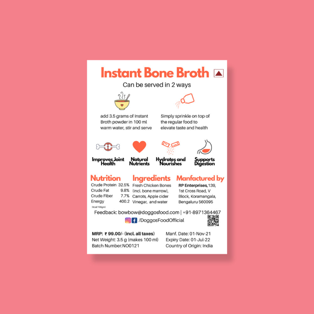 Doggos Instant Chicken Bone Broth with Carrot for Pets